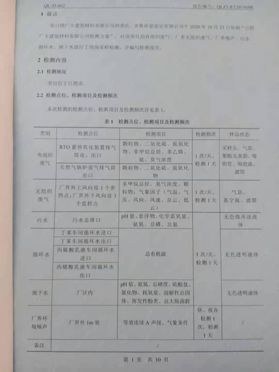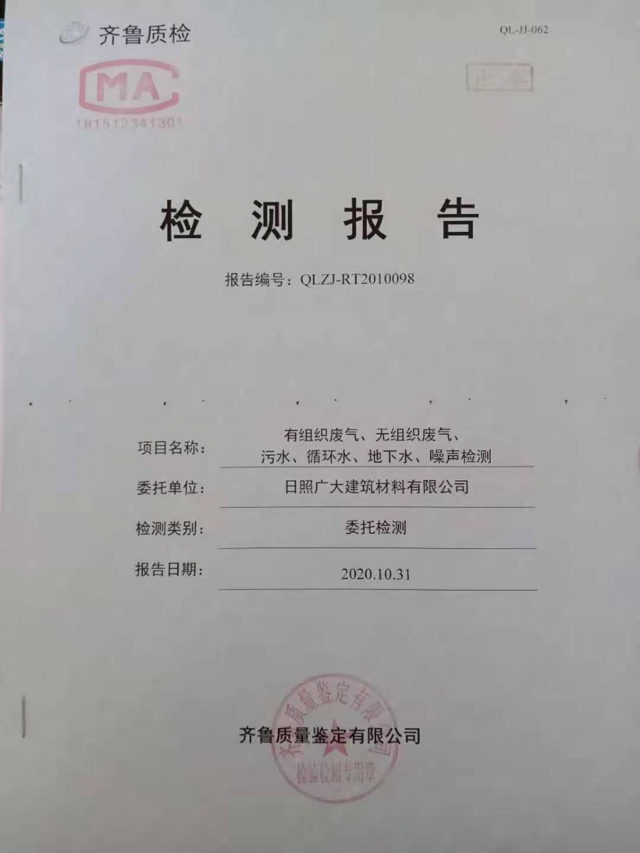 日照廣大建筑材料有限公司第四季度檢測(cè)報(bào)告